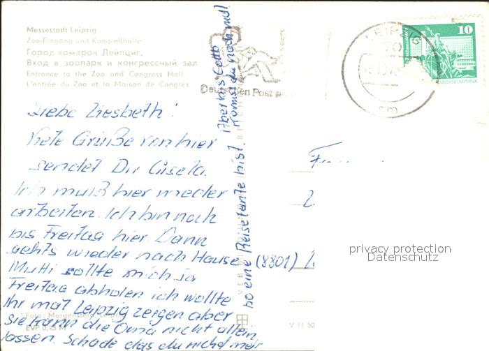 72250284 alte Postkarte LEIPZIG Sachsen Zoo Eingang und Kongresshalle Messestadt postalisch gelaufen Erhaltung siehe scans KatCode: 11110014365000