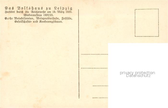 33085624 Leipzig Volkshaus Weinprobierstube postalisch nicht gelaufen Erhaltung siehe scans [LiesaD40] KatCode: 11110014365000