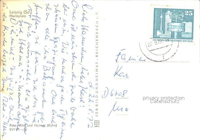 72114697 alte Postkarte Leisnig Marktplatz postalisch gelaufen Erhaltung siehe scans KatCode: 11110014375090