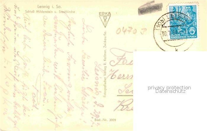 72642835 alte Postkarte Leisnig Schloss Mildenstein und Stadtkirche postalisch gelaufen Erhaltung siehe scans [AndreD76] KatCode: 11110014375090