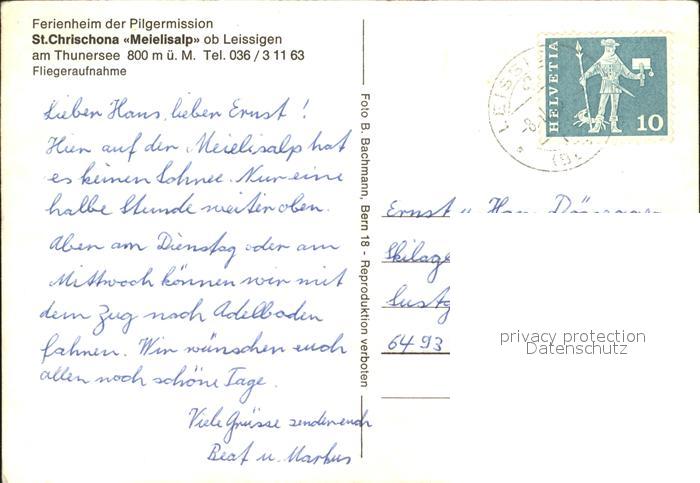 11640060 Leissigen Ferienheim Pilgermission St. Chrischona Meielisalp Fliegeraufnahme postalisch gelaufen Erhaltung siehe scans Alte Ansichtskarte Postkarte alte Postkarte Paol Katcode 11470060175282