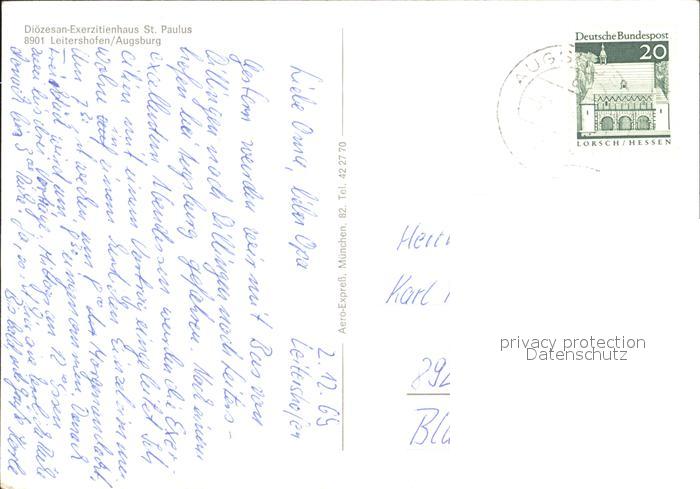 72053850 alte Postkarte Leitershofen Dioezesan Exerzitienhaus St Paulus postalisch gelaufen Erhaltung siehe scans KatCode: 11110009772202