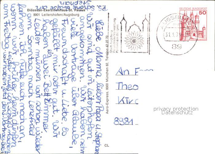 72575921 alte Postkarte Leitershofen Dioezesan Exerzitienhaus St. Paulus postalisch gelaufen Erhaltung siehe scans [LiesaD40] KatCode: 11110009772202