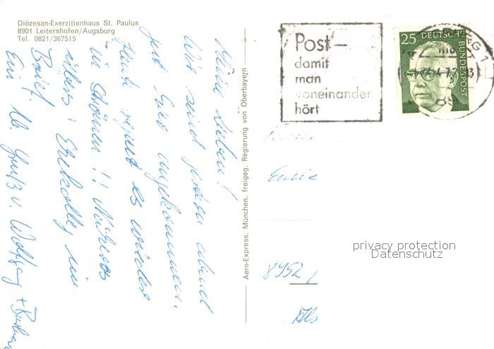 73656160 alte Postkarte Leitershofen Dioezesan Exerzitienhaus St Paulus Fliegeraufnahme postalisch gelaufen Erhaltung siehe scans [WerneD78] KatCode: 11110009772202