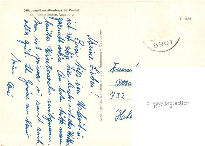73719481 alte Postkarte Leitershofen Dioezesan Exerzitienhaus St Paulus Fliegeraufnahme postalisch gelaufen Erhaltung siehe scans [WerneD78] KatCode: 11110009772202