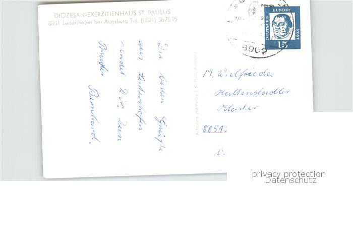 alte Postkarte Leitershofen Exerzitienhaus St. Paulus postalisch gelaufen Erhaltung siehe scans