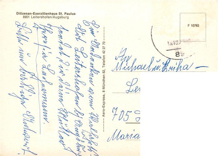 73892511 alte Postkarte Leitershofen Stadtbergen Bayern Dioezesan Exerzitienhaus St Paulus Hauskapelle postalisch gelaufen Erhaltung siehe scans [WerneD78] KatCode: 11110009772202