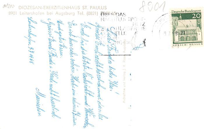 73899588 alte Postkarte Leitershofen Stadtbergen Bayern Dioezesan Exerzitienhaus St Paulus postalisch gelaufen Erhaltung siehe scans [FriedD77] KatCode: 11110009772202