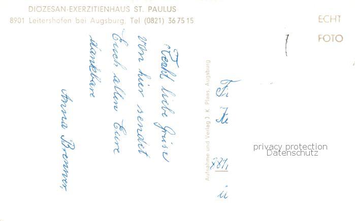 73800448 alte Postkarte Leitershofen Stadtbergen Bayern Dioezsan Exerzitienhaus St Paulus postalisch gelaufen Erhaltung siehe scans [WerneD78] KatCode: 11110009772202