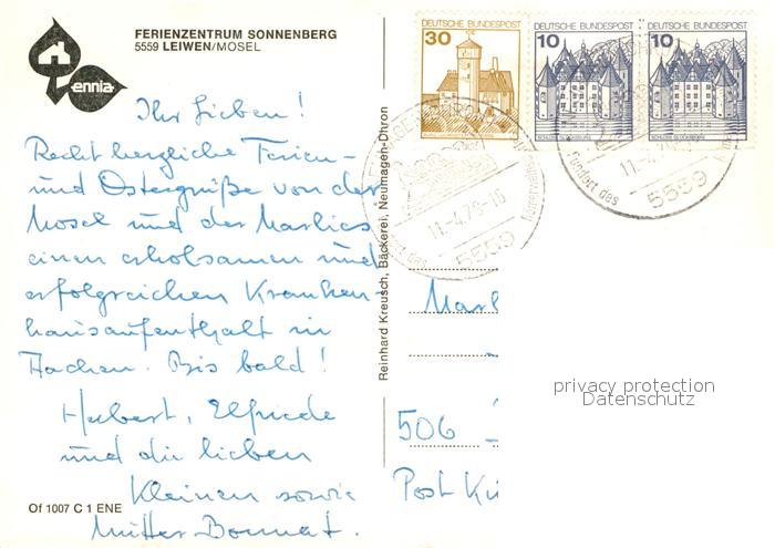 73023841 alte Postkarte Leiwen Mosel Ferienzentrum Sonnenberg Gaststube Schwimmbad Speisesaal postalisch gelaufen Erhaltung siehe scans [WerneD78] KatCode: 11110007235074