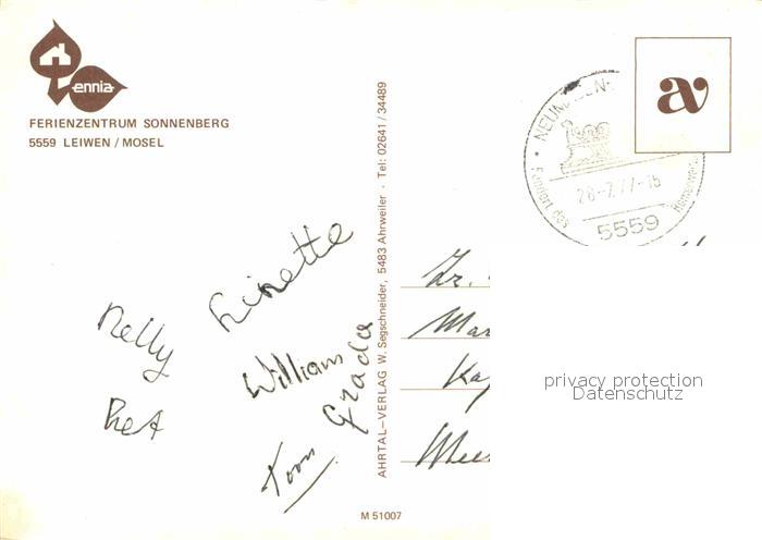72864915 alte Postkarte Leiwen Mosel Ferienzentrum Sonnenberg Trittenheim postalisch gelaufen Erhaltung siehe scans [NatalD47] KatCode: 11110007235074