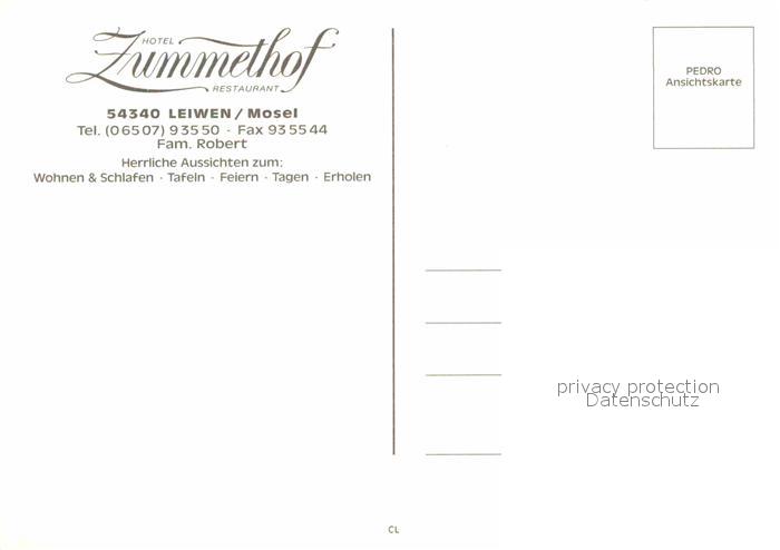 72806686 Leiwen Mosel Hotel Zummelhof Restaurant Blick auf die Mosel postalisch nicht gelaufen Erhaltung siehe scans [FriedD77] KatCode: 11110007235074