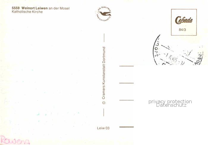 72679688 alte Postkarte Leiwen Mosel Katholische Kirche postalisch gelaufen Erhaltung siehe scans [FriedD77] KatCode: 11110007235074