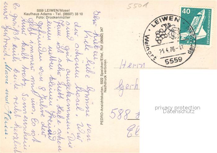 73671093 alte Postkarte Leiwen Mosel Kirche Panorama Moseltal Waldpartie Stausee postalisch gelaufen Erhaltung siehe scans [FriedD77] KatCode: 11110007235074
