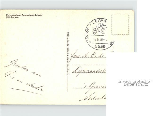 72481553 alte Postkarte Leiwen Trier-Saarburg Fliegeraufnahme Ferienzentrum Sonnenberg-Leiwen postalisch gelaufen Erhaltung siehe scans KatCode: 11110007235074