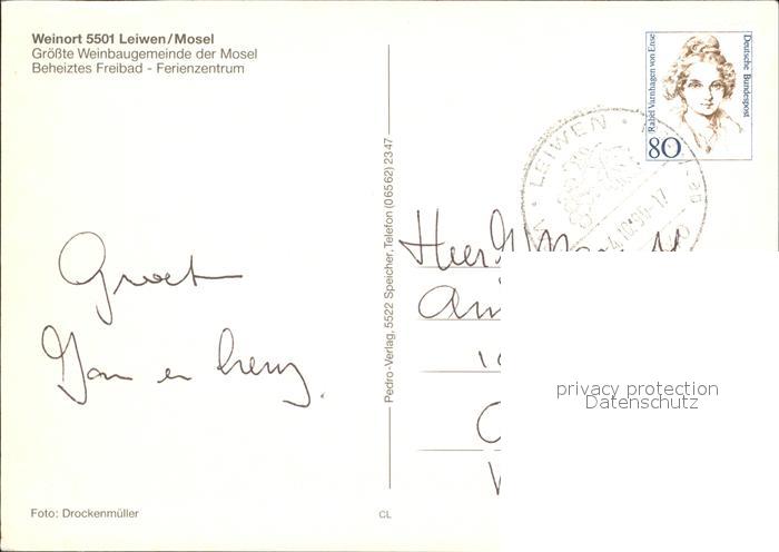 72921159 alte Postkarte Leiwen Trier-Saarburg Freibad postalisch gelaufen Erhaltung siehe scans [MatthD68] KatCode: 11110007235074