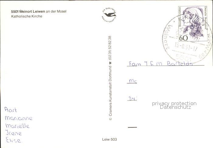 72232897 alte Postkarte Leiwen Trier-Saarburg Katholische Kirche postalisch gelaufen Erhaltung siehe scans KatCode: 11110007235074