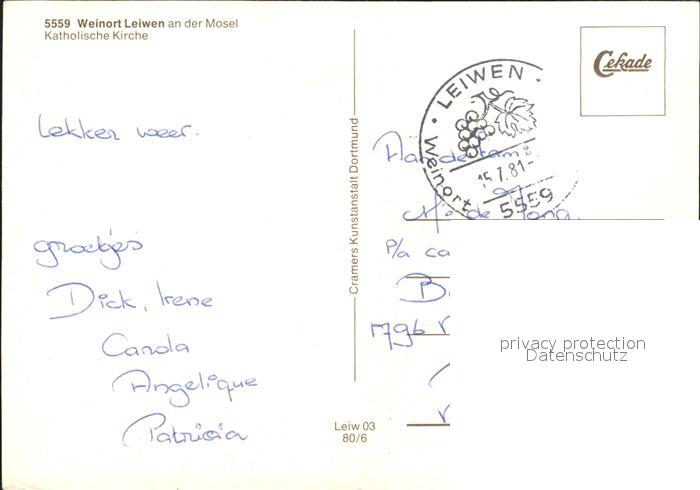 72394488 alte Postkarte Leiwen Trier-Saarburg Katholische Kirche postalisch gelaufen Erhaltung siehe scans KatCode: 11110007235074
