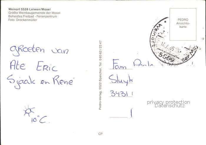 72243200 alte Postkarte Leiwen Trier-Saarburg Kirche Schwimmbad postalisch gelaufen Erhaltung siehe scans KatCode: 11110007235074