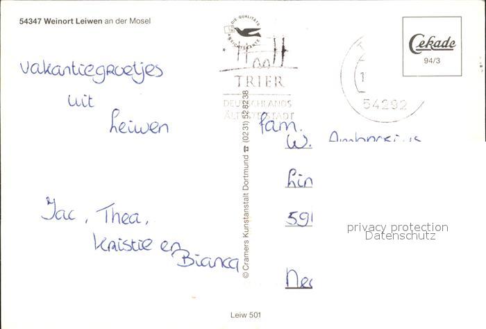 72421697 alte Postkarte Leiwen Trier-Saarburg Panorama Moselpartie postalisch gelaufen Erhaltung siehe scans KatCode: 11110007235074