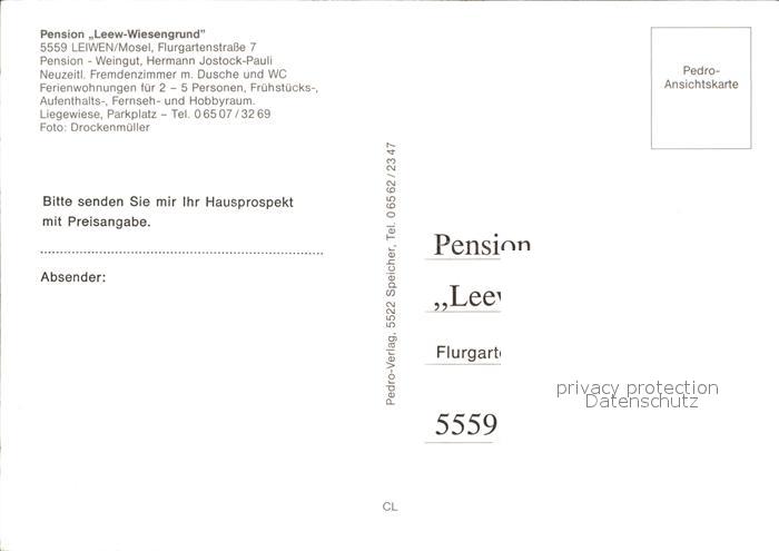 Leiwen Trier-Saarburg Pension Leew-Wiesengrund postalisch nicht gelaufen Erhaltung siehe scans