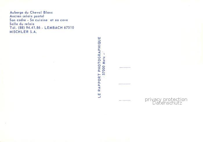 13029903 Lembach Bas Rhin Elsass Hotel Cheva Blanc postalisch nicht gelaufen Erhaltung siehe scans [KathaD81] KatCode: 11170067767263
