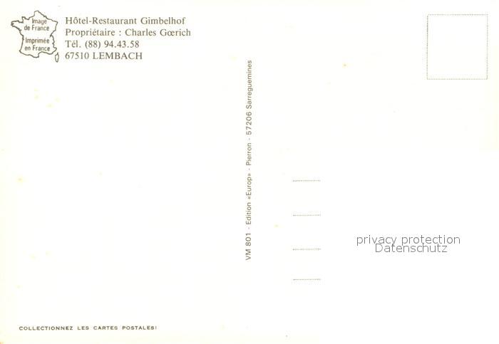 13039760 Lembach Bas Rhin Elsass Hotel Restaurant Gimbelhof Gasträume Zimmer KatCode 11170067767263