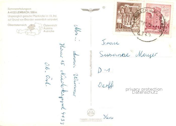 12983771 alte Postkarte Lembach Muehlkreis Fliegeraufnahme postalisch gelaufen Erhaltung siehe scans [AndreD76] KatCode: 11390313041318