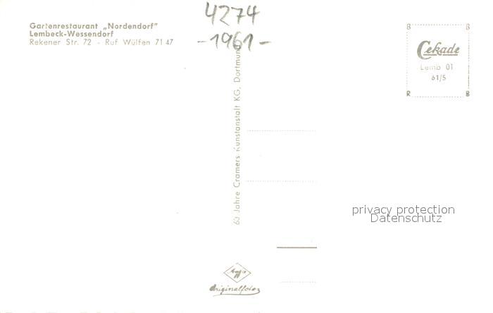 73754625 Lembeck Gartenrestaurant Nordendorf postalisch nicht gelaufen Erhaltung siehe scans [LiesaD40] KatCode: 11110005562012