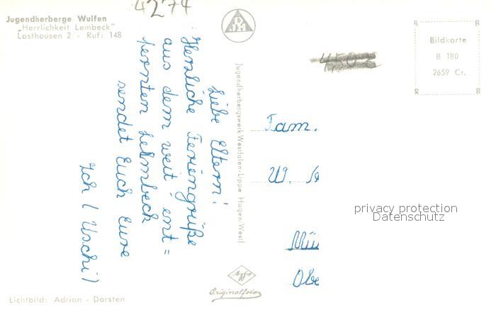 73754623 Lembeck Jugendherberge Wulfen postalisch nicht gelaufen Erhaltung siehe scans [LiesaD40] KatCode: 11110005562012