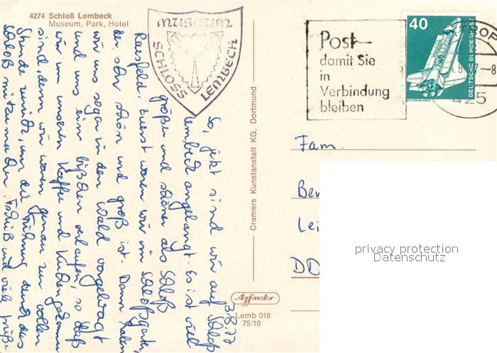 73646564 alte Postkarte Lembeck Schloss Museum Park Hotel Fliegeraufnahme postalisch gelaufen Erhaltung siehe scans [FriedD77] KatCode: 11110005562012