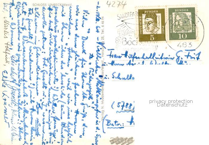 73692632 alte Postkarte Lembeck Wasserschloss postalisch gelaufen Erhaltung siehe scans [FriedD77] KatCode: 11110005562012