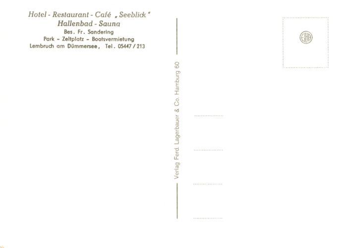 73898354 Lembruch Duemmersee Hotel Restaurant Cafe Seeblick Gastraeume Terrasse postalisch nicht gelaufen Erhaltung siehe scans [WerneD78] Wern Katcode 11110003251022