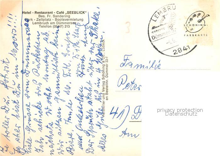 72971313 alte Postkarte Lembruch Duemmersee Hotel-Restaurant Seeblick postalisch gelaufen Erhaltung siehe scans [PaolaD17] KatCode: 11110003251022