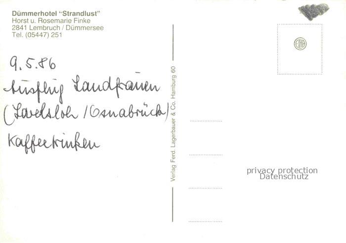 74152194 Lembruch Duemmersee Niedersachsen Duemmerhotel Strandlust postalisch nicht gelaufen Erhaltung siehe scans [WerneD78] KatCode: 11110003251022