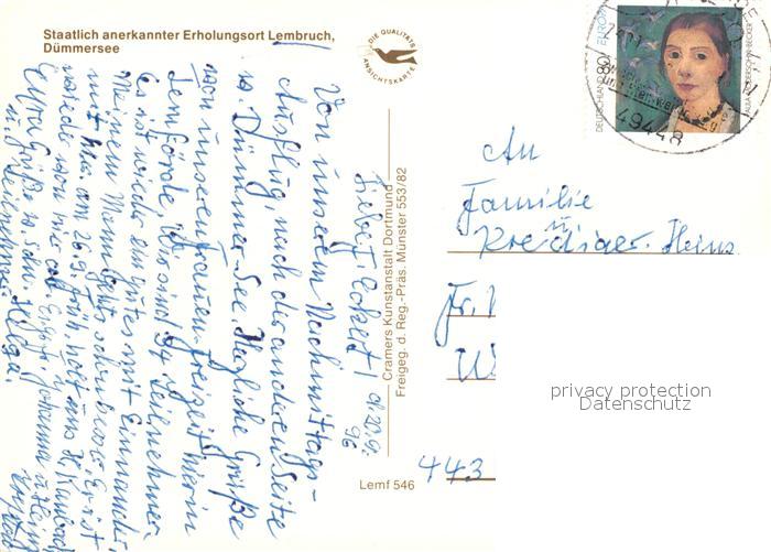 73321909 alte Postkarte Lembruch Fliegeraufnahme Duemmersee postalisch gelaufen Erhaltung siehe scans [KathaD81] KatCode: 11110003251022