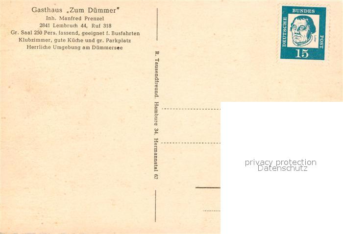 33045167 Lembruch Gasthaus Zum Duemmer postalisch nicht gelaufen Erhaltung siehe scans [NatalD47] KatCode: 11110003251022