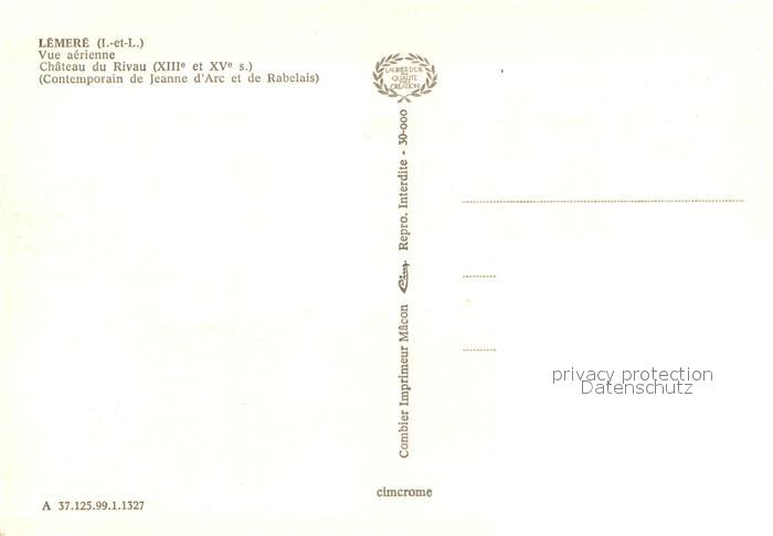 13662348 Lemere Vue aerienne Chateau du Riveau postalisch nicht gelaufen Erhaltung siehe scans [WerneD78] Wern Katcode 11170037137125