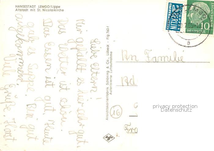 73021358 alte Postkarte Lemgo Fliegeraufnahme Altstadt St. Nicolaikirche postalisch gelaufen Erhaltung siehe scans [NatalD47] KatCode: 11110005766044