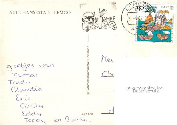 72933587 alte Postkarte Lemgo Lippe NRW Alt Lemgo Planetenhaus Mittelstr Hs Sonnenuhr Markt Brunnen Ostertor postalisch gelaufen Erhaltung siehe scans [WerneD78] KatCode: 11110005766044