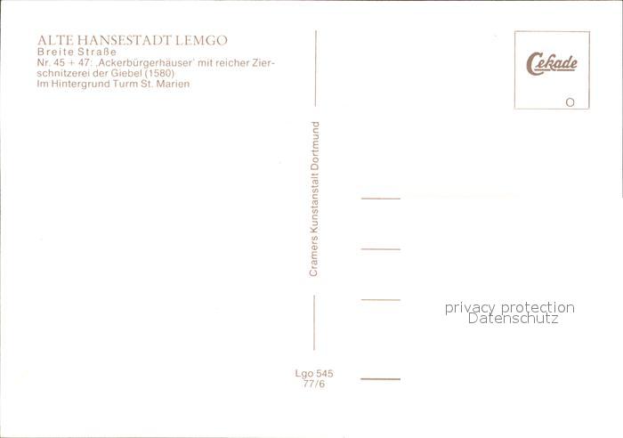 71998916 Lemgo Lippe NRW Alte Hansestadt Fachwerkhaeuser Breite Strasse postalisch nicht gelaufen KatCode: 11110005766044