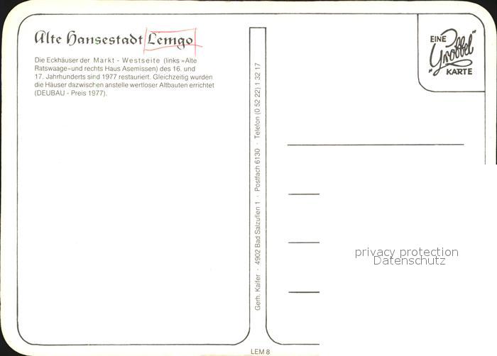 72528416 Lemgo Lippe NRW Eckhaeuser Marktplatz Alte Ratswaage Haus Asemissen Alte Hansestadt postalisch nicht gelaufen Erhaltung siehe scans KatCode: 11110005766044