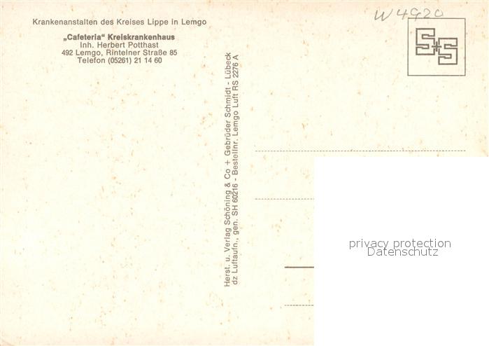 72942616 Lemgo Lippe NRW Fliegeraufnahme Cafeteria Kreiskrankenhaus postalisch nicht gelaufen Erhaltung siehe scans [LiesaD40] KatCode: 11110005766044