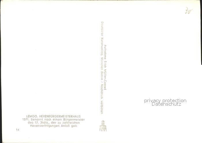 72299226 Lemgo Lippe NRW Hexenbuergermeisterhaus postalisch nicht gelaufen Erhaltung siehe scans KatCode: 11110005766044