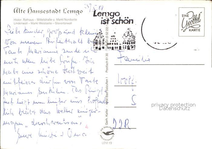 72543442 alte Postkarte Lemgo Lippe NRW Historisches Rathas Mittestrasse Markt Lindenwall Slavertorwall postalisch gelaufen Erhaltung siehe scans [WerneD78 kv016box] KatCode: 11110005766044
