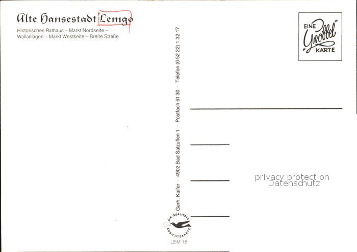 72528418 Lemgo Lippe NRW Historisches Rathaus Marktplatz Wallanlagen Breite Strasse Alte Hansestrasse postalisch nicht gelaufen Erhaltung siehe scans KatCode: 11110005766044