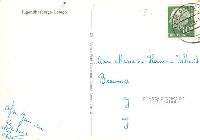 73871103 Lemgo Lippe NRW Jugendherberge postalisch gelaufen Erhaltung siehe scans [WerneD78] alte Postkarte Wern Katcode 11110005766044