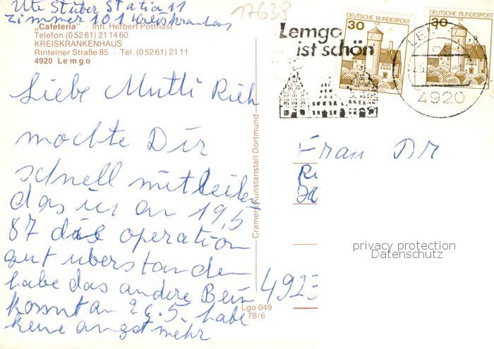 73797102 Lemgo Lippe NRW Kreiskrankenhaus Speisesaal Teilansichten postalisch gelaufen Erhaltung siehe scans [WerneD78] alte Postkarte Wern Katcode 11110005766044