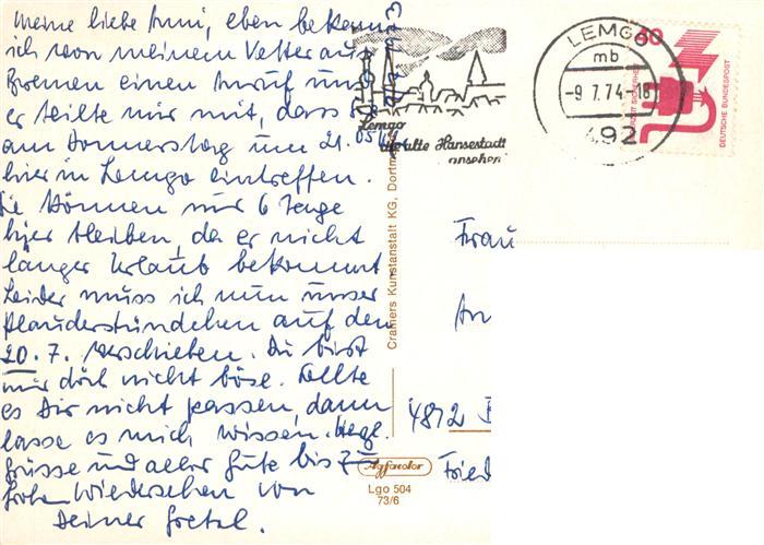 73924842 Lemgo Lippe NRW Motive Stadtzentrum Hansestadt Fachwerkhaus Erker am Rathaus Haus Wippermann Historisches Gebaeude postalisch gelaufen Erhaltung siehe scans [FriedD77] alte Postkarte Frie Katcode 11110005766044