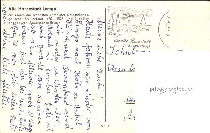 71943094 alte Postkarte Lemgo Lippe NRW Rathaus postalisch gelaufen Erhaltung siehe scans KatCode: 11110005766044